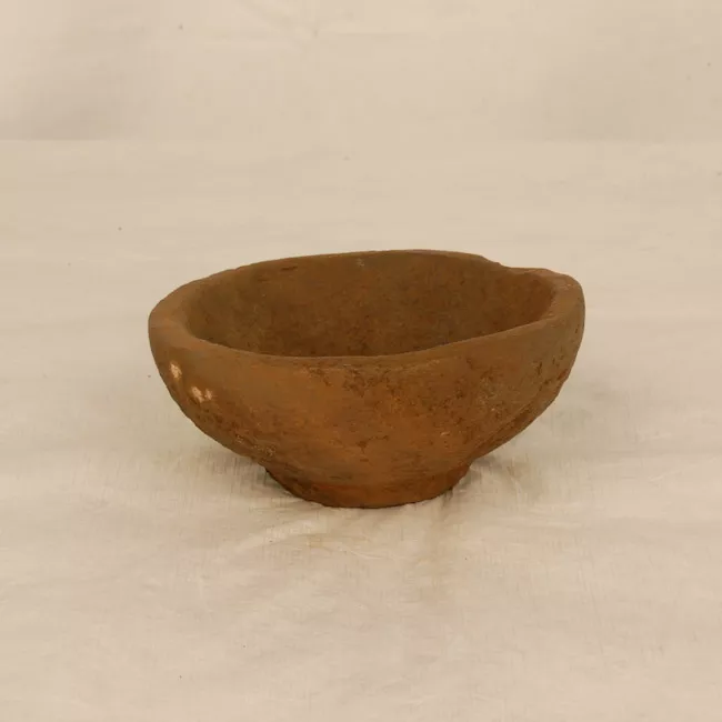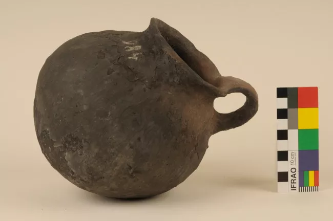 Vasija de cuerpo esférico y base circular hendida o cóncava, cuello al...