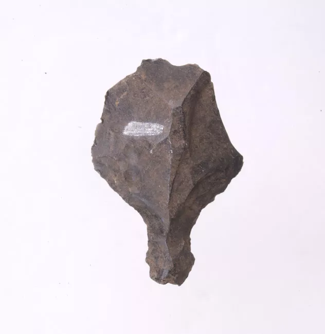 Objeto de forma lanceolada, de base fragmentada. Talla bifacial continua con retoque bimarginal sencillo. Color negro.