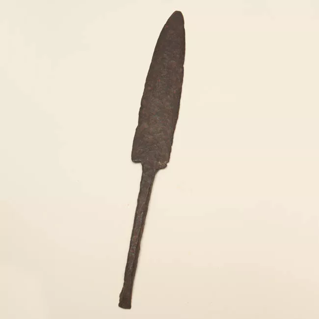 Objeto de uso bélico de forma alargada, posee una espiga de sección ci...