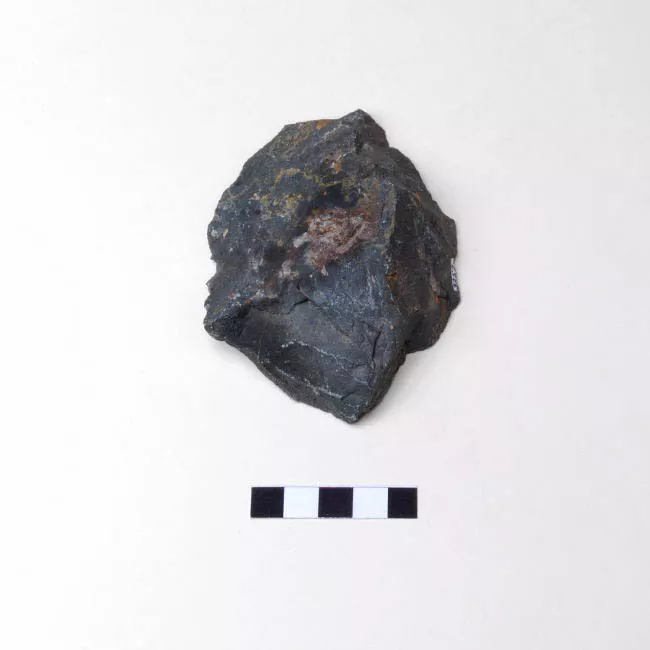 Instrumento utilizado para pulir superficies más blandas. Objeto de forma cilíndrica con un extremo apuntado y bordes redondeados. Superficie lisa y brillante de color negro.