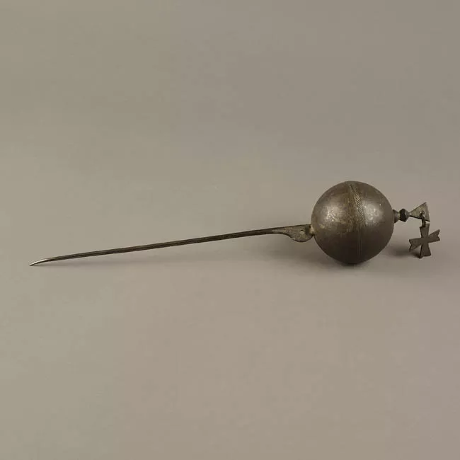 Adorno de uso personal que se lleva como parte de un collar o pendiendo de un cordel. Objeto de forma oblonga irregular que asemeja la silueta de un pez; se encuentra perforado en el sector que correspondería al ojo. Está fabricado en turquesa pulida de color verde oscuro.