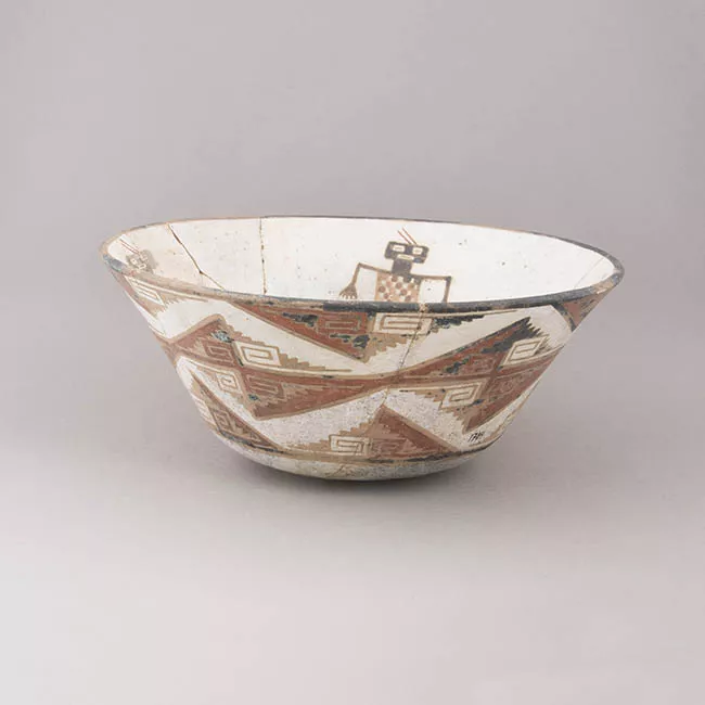 Vasija asimétrica, restringida con cuello, contorno complejo. Superfic...