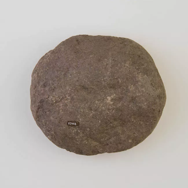 Objeto de uso doméstico elaborado sobre guijarro de granito de color g...