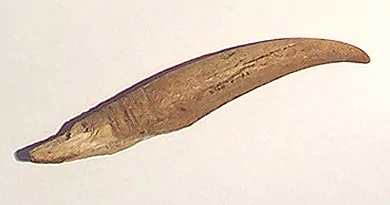 Componente de arpón compuesto. Objeto de forma alargada y curva con am...
