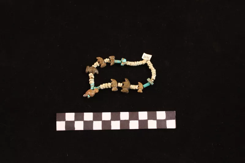 Collar de cuentas liticas algunas con modelado ornitomorfo. Las cuenta...