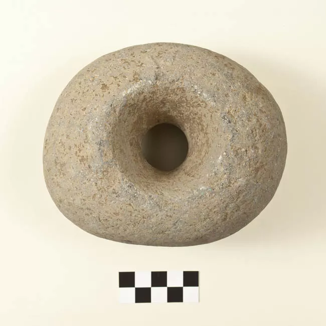 Instrumento lítico de forma ovalada irregular y sección semiplana con ...