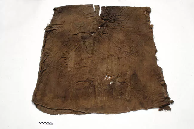 Faja textil de uso personal que se lleva sobre la cintura para sostener la vestidura. De forma rectangular tejida a telar a faz de urdimbre y decorada con urdimbre desnuda, presenta decoración geométrica en líneas y rombos de color rojo y rosado sobre fondo blanco con una línea ancha de color azul en el sector central. En los extremos tiene flecos en torsión y anudado.