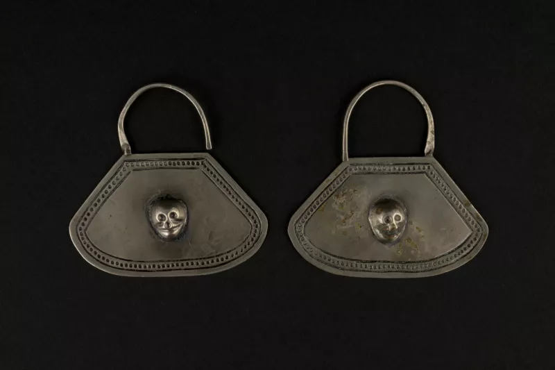 Textil de uso doméstico utilizado como abrigo corporal y de cama. Objeto de forma cuadrada tejido a telar a faz de urdimbre, de colores blanco y negro, de encuentra decorado con franjas horizontales de color rojo y verde oscuro.