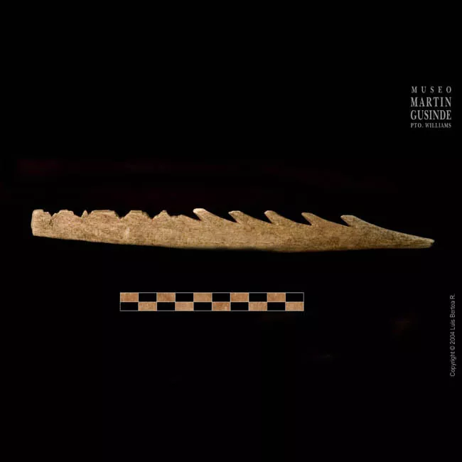 Objeto oblongo confeccionado en hueso. Un extremo aguzado, el opuesto ...