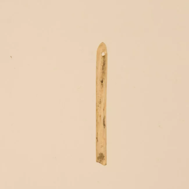 Fragmento de aguja de hueso correspondiente al extremo por donde se pa...