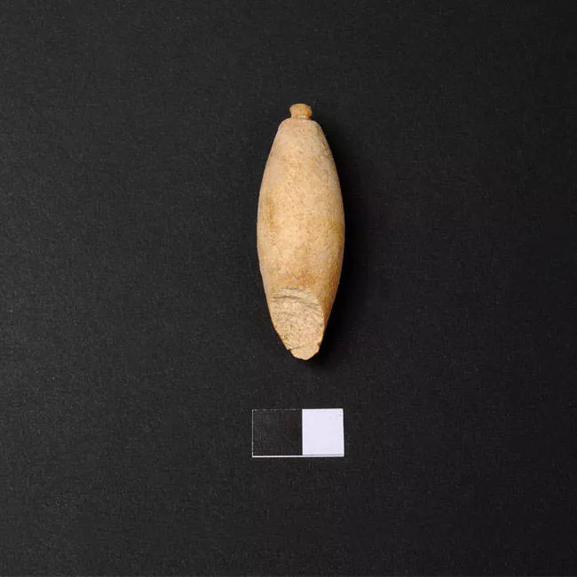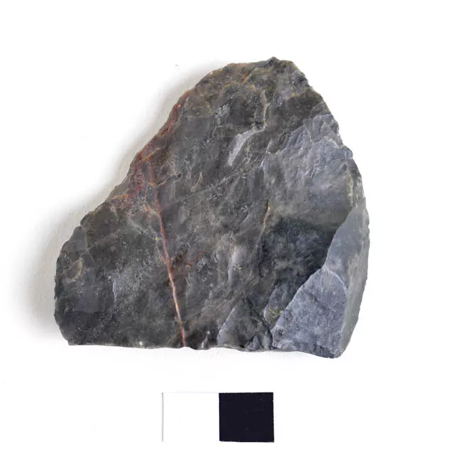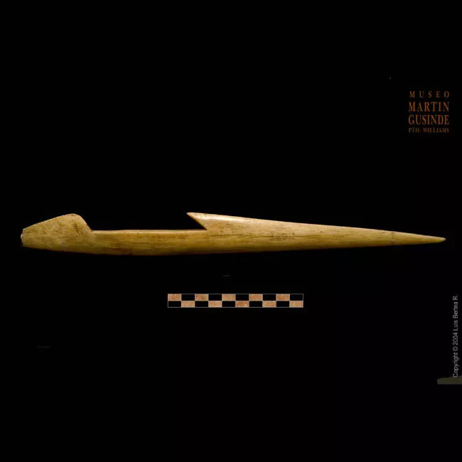 Objeto de forma triangular, de talla bifacial con retoque bimarginal; ...