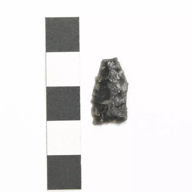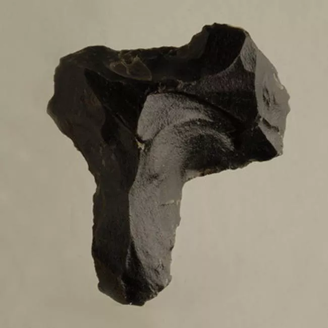 Pieza quebrada de color negro y de variedad translúcida. La base es le...