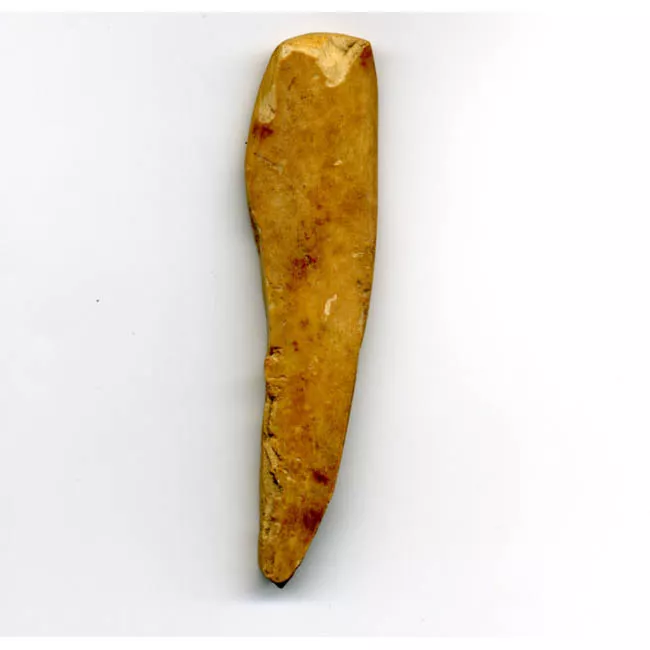 Objeto de forma triangular redondeada con pedúnculos y base plana. Ta...