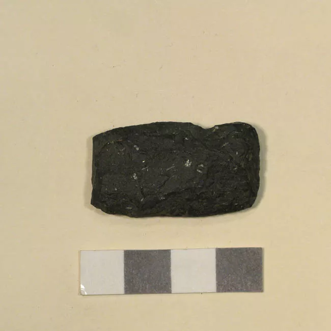 Pieza de forma rectangular, elaborada mediante talla bifacial sobre un...