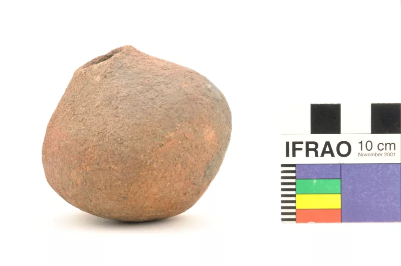 Objeto de uso doméstico. Contenedor de cuerpo globular. Cuello levemen...