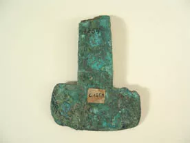 Objeto oblongo de sección cilíndrica. Posee un extremo redondeado y otro extremo afilado a bisel. Elaborado en piedra tallada y pulida de color grisáceo.
