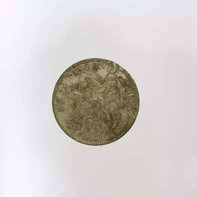 Pieza completa y de forma circular, tiene una capa de óxido gris. El ...