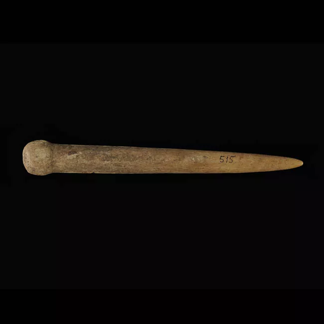 Objeto de forma alargada cónica, posee en el sector distal un remate c...