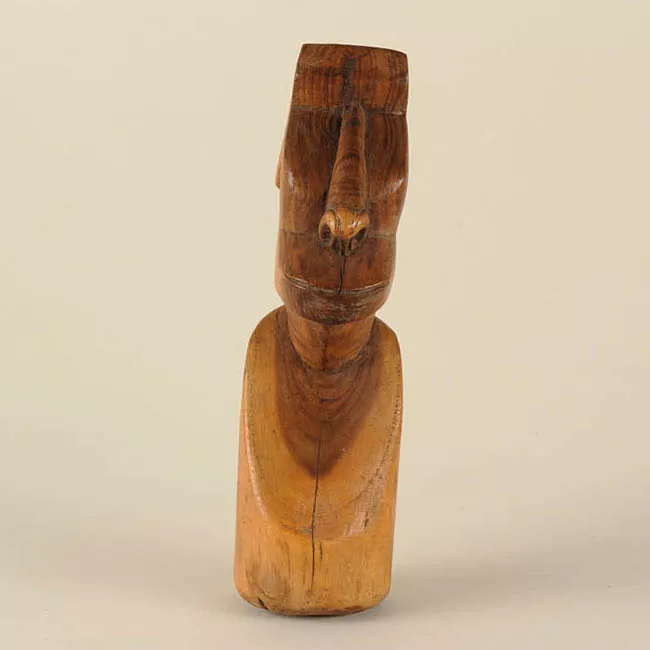 Cuerpo de forma irregular el cual posee 2 apéndices en el sector inferior el cual sirve de soporte, uno de estos apéndices se encuentra ausente producto de fractura. Posee un tercer apéndice en su extremo distal.