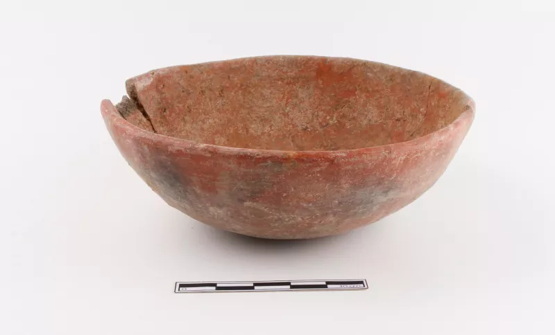 Instrumento lítico de forma elipsoidal. Se observa el borde activo vis...