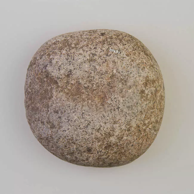 Objeto de uso doméstico elaborado sobre guijarro de granito de color g...