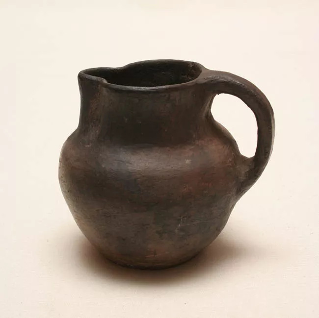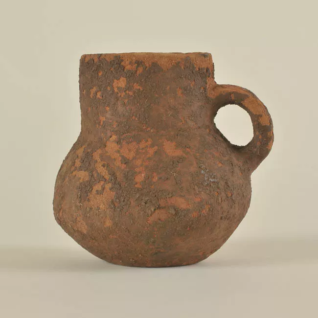 Vasija simétrica de cuerpo globular, de estructura restringida con cuello y perfil inlfectado. Cuerpo esférico y base convexa. Superficie de color café