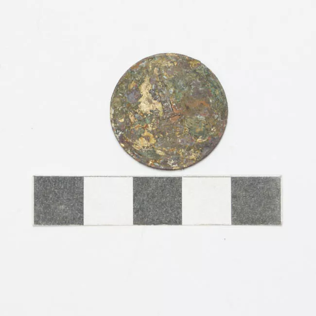 Pieza de color marrón claro . El anverso está cubierto por óxido; en e...