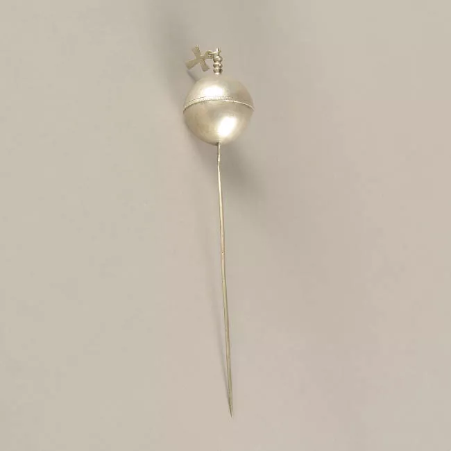 Objeto de forma rectangular oblonga, de uso personal femenino en la cultura Mapuche, como prendedor. Pieza construida en base a una cuchara de alpaca, la que fue calentada, martillada y devastada por lima. Posee en su parte superior dos figuras de aves que se enfrentan con estampados por cuño y círculo. En el borde posee globulaciones realizadas sobre plomo.