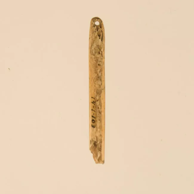 Fragmento de aguja de hueso correspondiente al extremo por donde se pa...