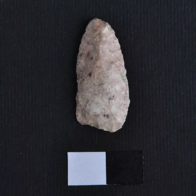 Objeto de forma lanceolada, de talla bifacial con retoque bimarginal d...