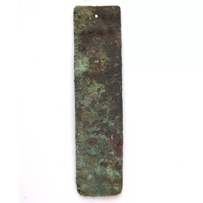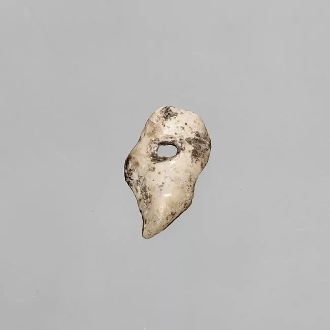 Pieza pequeña de forma que tiende a rectangular y de color beige torna...