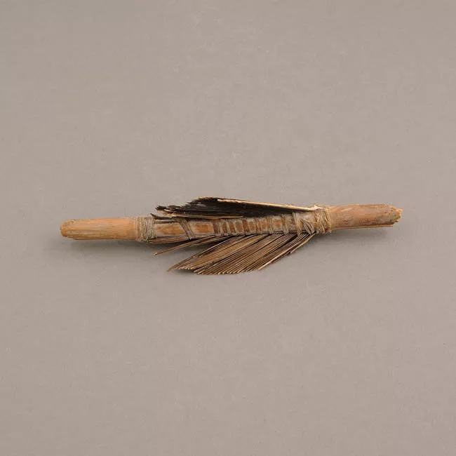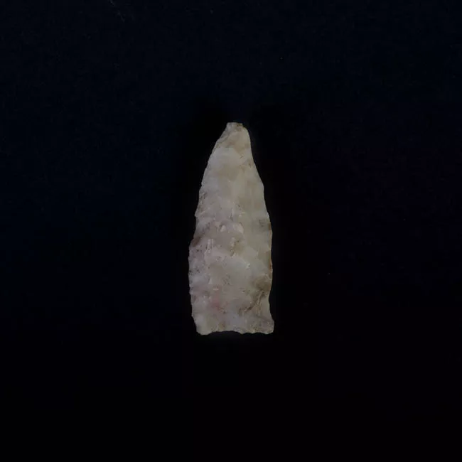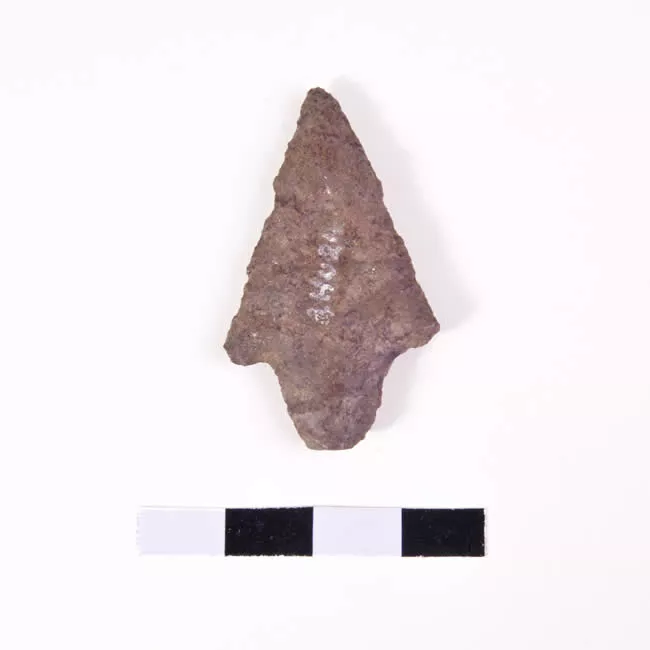 Objeto de forma triangular, de talla bifacial y color marrón. Tiene la...