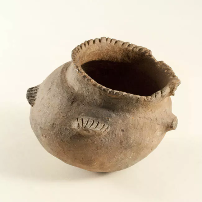Jarro cerámico monócromo (Jarro zapato). De forma asimétrica, de base ...