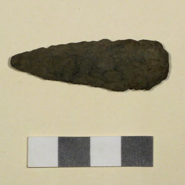 Instrumento lítico usado como cabeza de proyectil arrojadizo. Tiene fo...