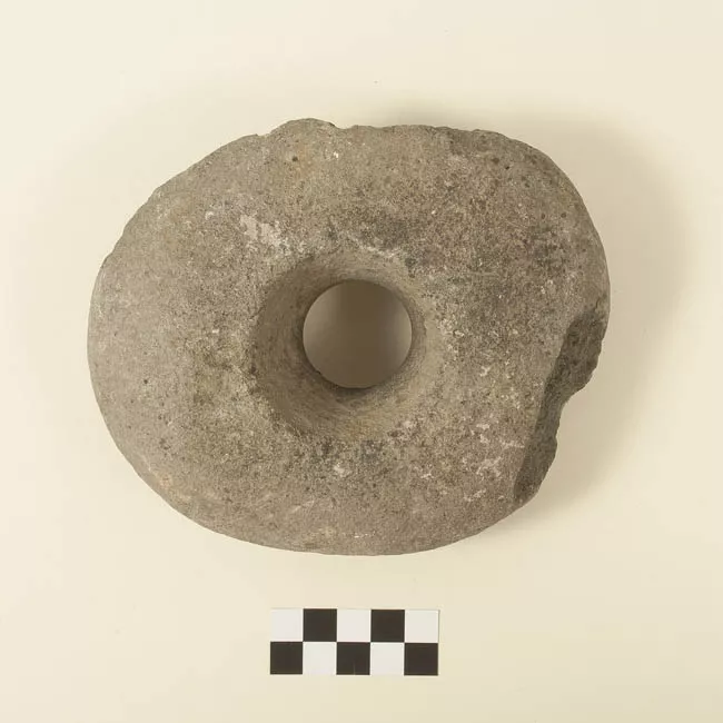 Herramienta lítica confeccionada en cuarzo, de color blanco marfil y a...