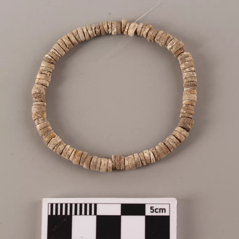 Parte de un shikill que corresponde a su cadena. No se encuentra presente su placa inferior, por lo que la pieza está incompleta.