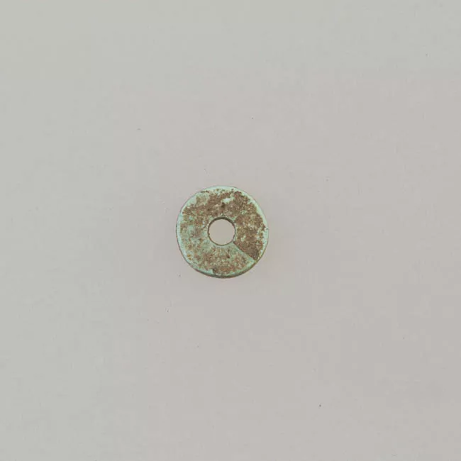 Se presume que la pieza está incompleta ya que la terminación circular inferior del brazo derecho sólo posee eslabón y el lóbulo central del brazo inferior no presenta eslabón ni colgante.