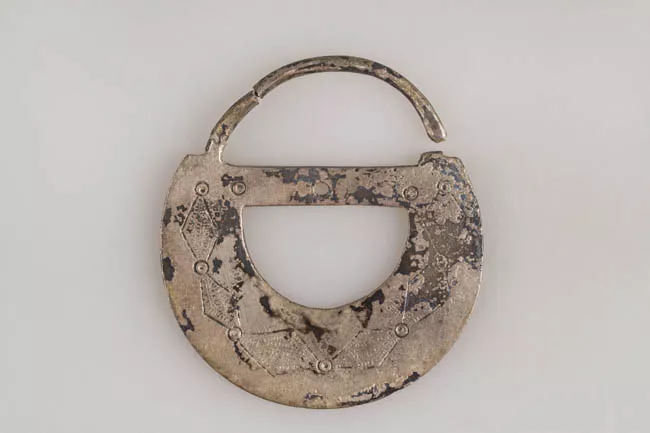 Pieza completa de forma circular. Es de color dorado y está cubierta p...