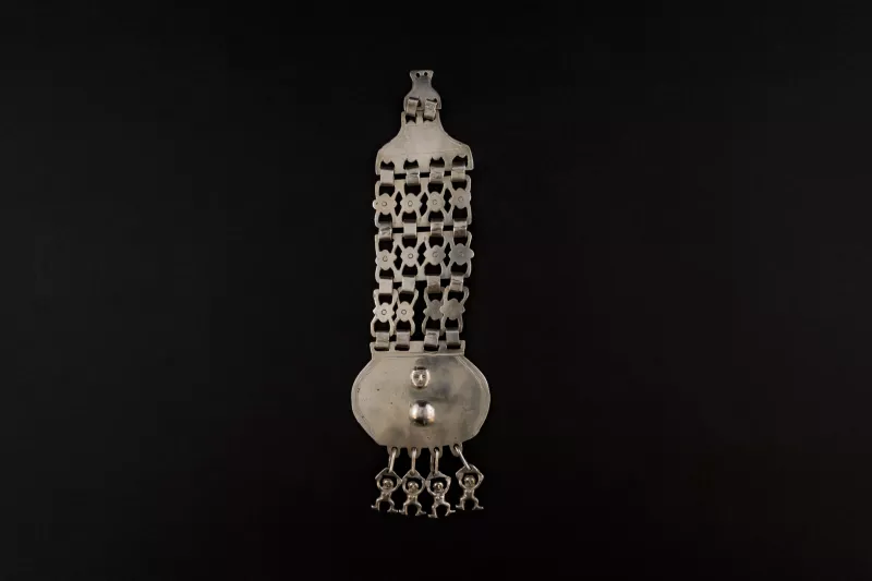 Objeto ornamental de uso personal elaborado en piedra talcosa de color blanco, de forma discoidal y sección transversal plana. Presenta una perforación central cilíndrica.