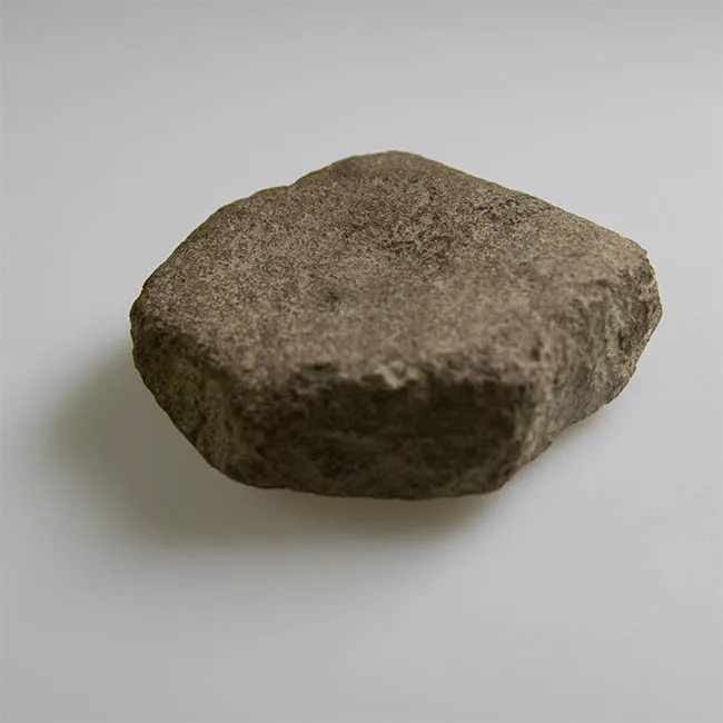 Objeto de uso doméstico de talla bifacial, elaborado en sílice de color gris y vetas blancas, de forma lanceolada apedunculada, de base recta y sección transversal romboidal.