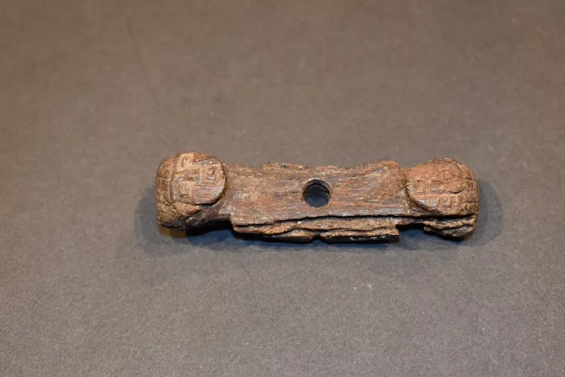 Pieza elaborada en un hueso largo de pingüino, que presenta un corte o...