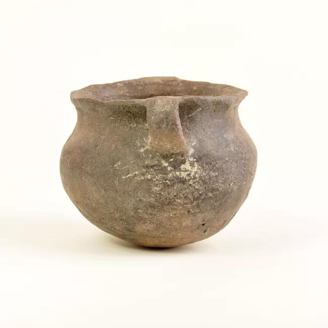 Objeto de forma semirestringida, cuello breve y recto con dos asas cin...