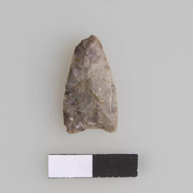 Objeto de uso doméstico de talla bifacial, elaborado en sílice opaco d...