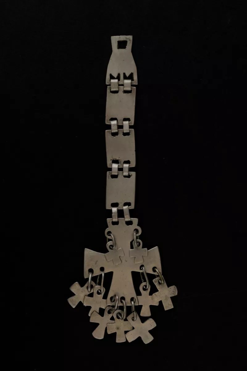 Objeto ornamental de uso personal de forma cilíndrica, elaborado en piedra talcosa de color amarillo. Presenta dos apéndices laterales para permitir su sujeción al labio inferior de un individuo. El objeto ha sido definido como "tembetá cilíndrico con alas corto".