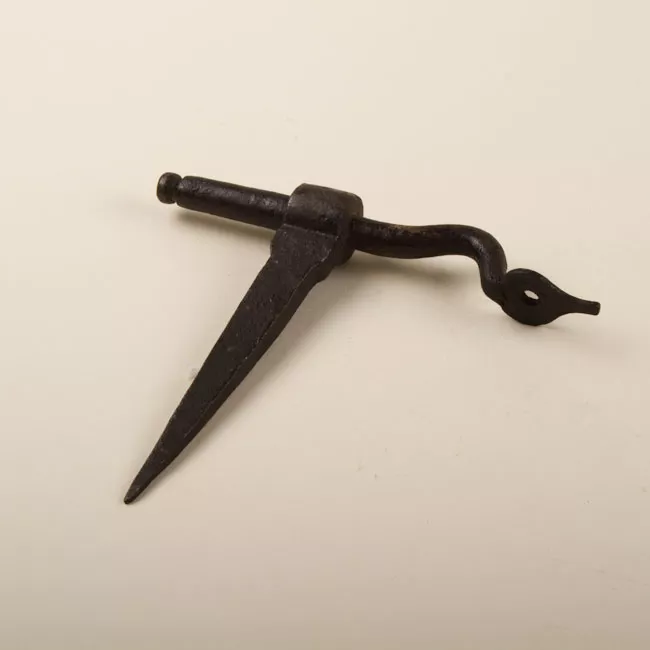 Objeto de forma alargada con ambos extremo aguzados, uno de ellos curv...
