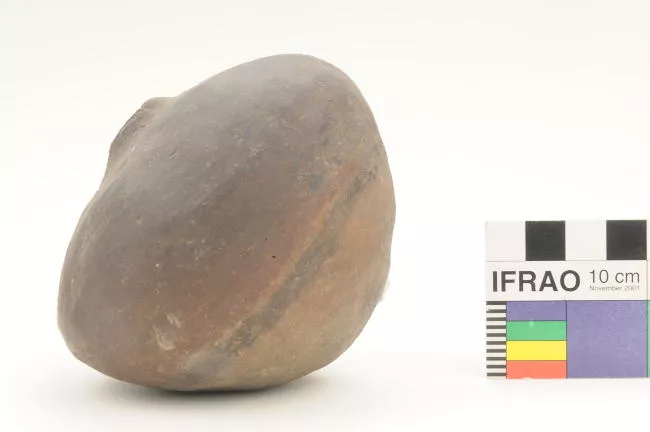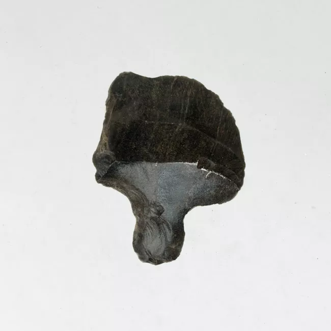 Objeto de uso doméstico de perfil ligeramente curvo y sección plana, cuyo extremo proximal corresponde a una paleta plana-cóncava, mientras que el extremo distal se presenta aguzado. En el sector medial tiene un apéndice rectangular grande sobresaliente a ambos lados del cuerpo. Hueso largo de mamífero.