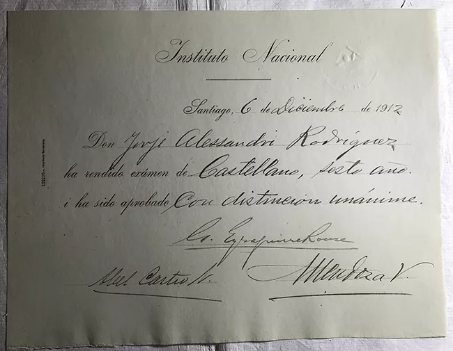 Rendición de examen de Ciencias Naturales de Jorge Alessandri Rodríguez