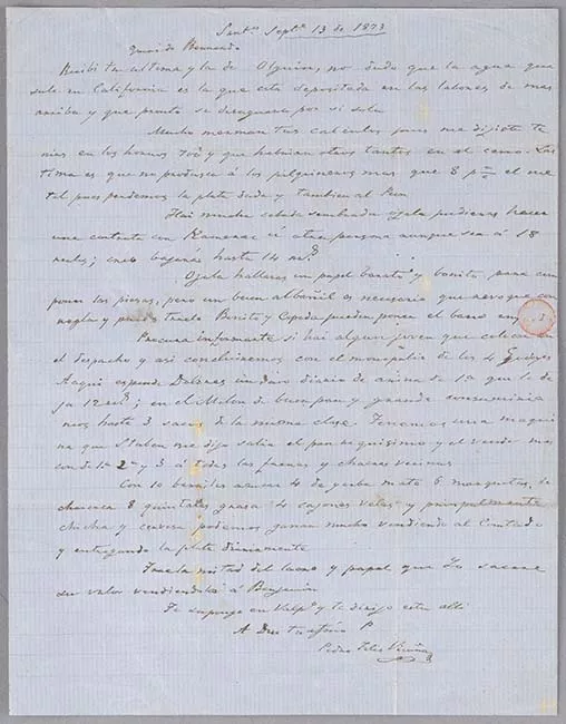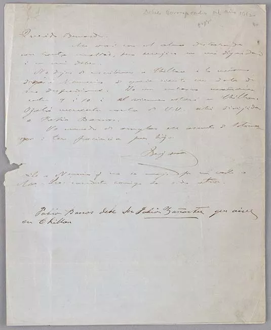 Carta de Hernán Guajardo a Olga Rives durante su detención en Oficina Chacabuco 1973
