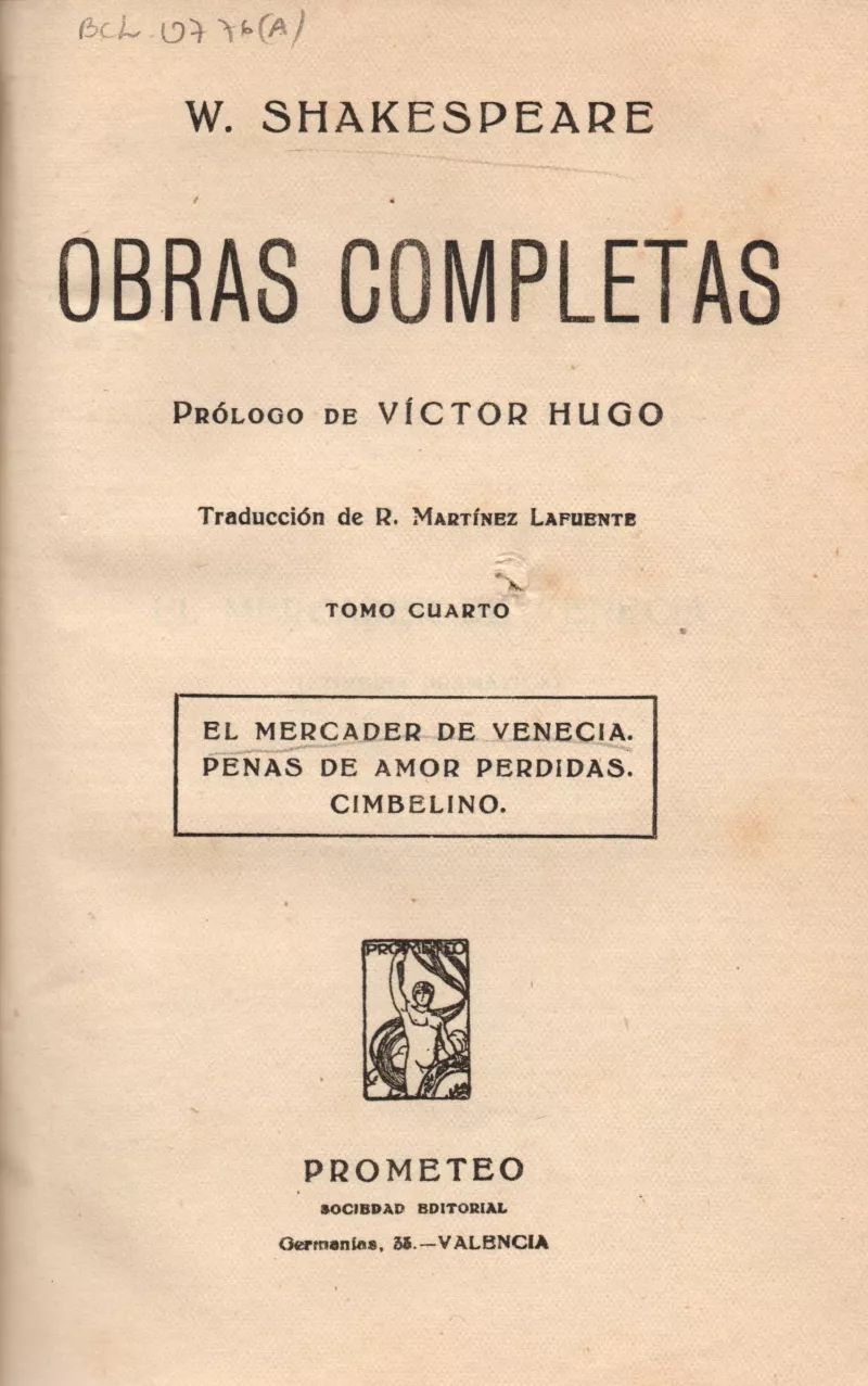 Obra literaria impresa en formato rectangular vertical. Encuadernación...