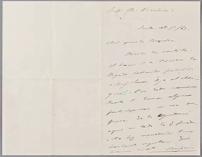 Fotocopia de Carta enviada por el Presidente Don José Manuel Balmaceda a su Madre